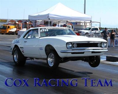 This is my 68 camaro that I built,along with some friends, Kevin Drew, Tito Corona, and my daughter Crista Cox in 1997. We've won several events including Summit Series races at Auto Club Speedway in Fontana, L.A.C.R. Track championships, Famoso Raceway, SCEDA Events, Drag Race Results Desert Bracket Clasic race, races at Las Vegas Motor Speedway including their Big Bucks Events, many other events including the 2009, 2010,2011 PSCA Bracket 1 ChampionshipWe also won the 2015 and 2016 NMCA WEST Nostalgia Street Car Championship.We have won over 40 Championships since 1977 with my Nova and this Camaro.